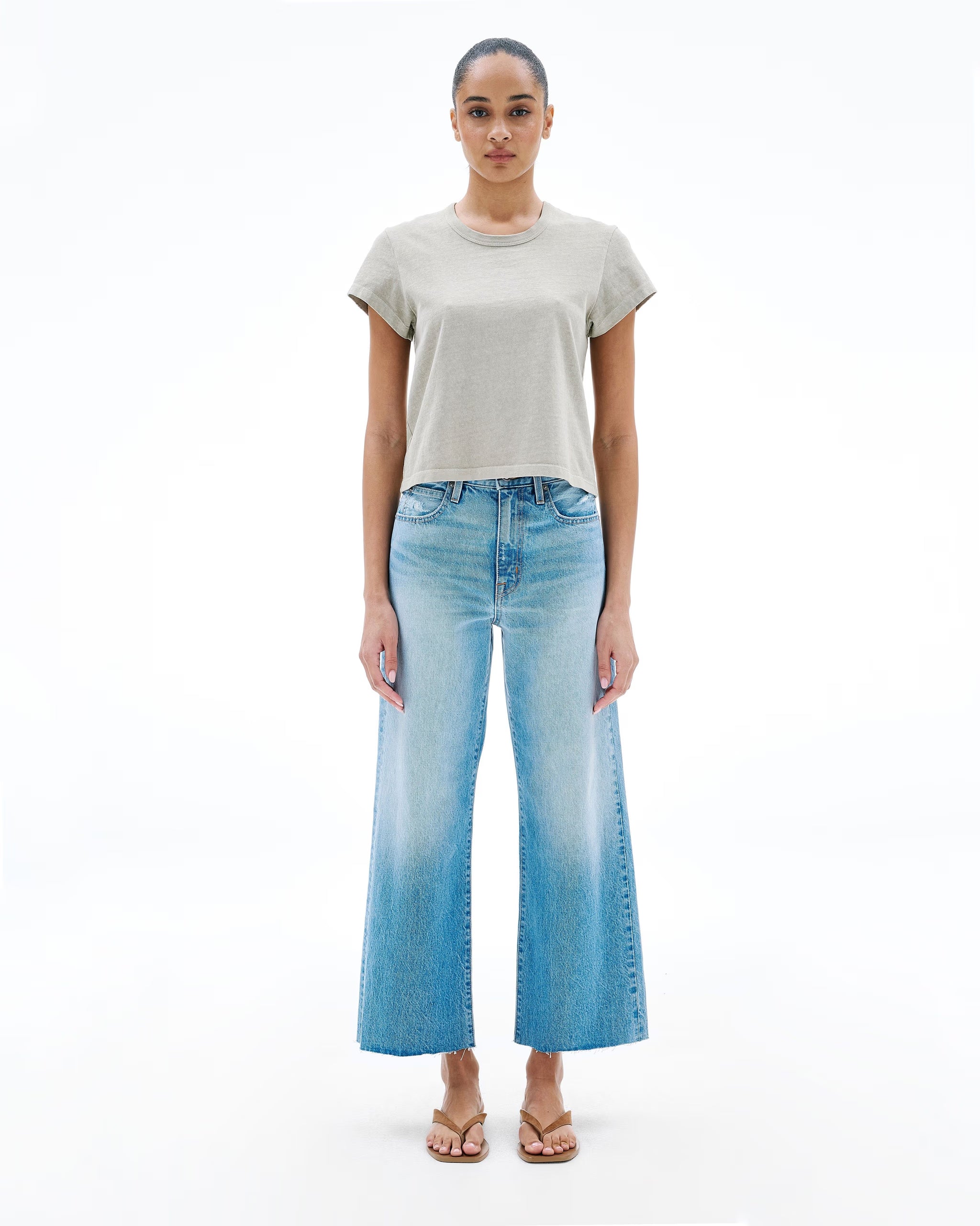 Grace is a SLVRLAKE signature style, offered in a cropped length designed to elongate the leg. Featuring a high-rise waist and wide-leg silhouette, it fits close through the waist and hip before flowing through the leg, finished with a raw hem. An essential style offering versatile styling options.