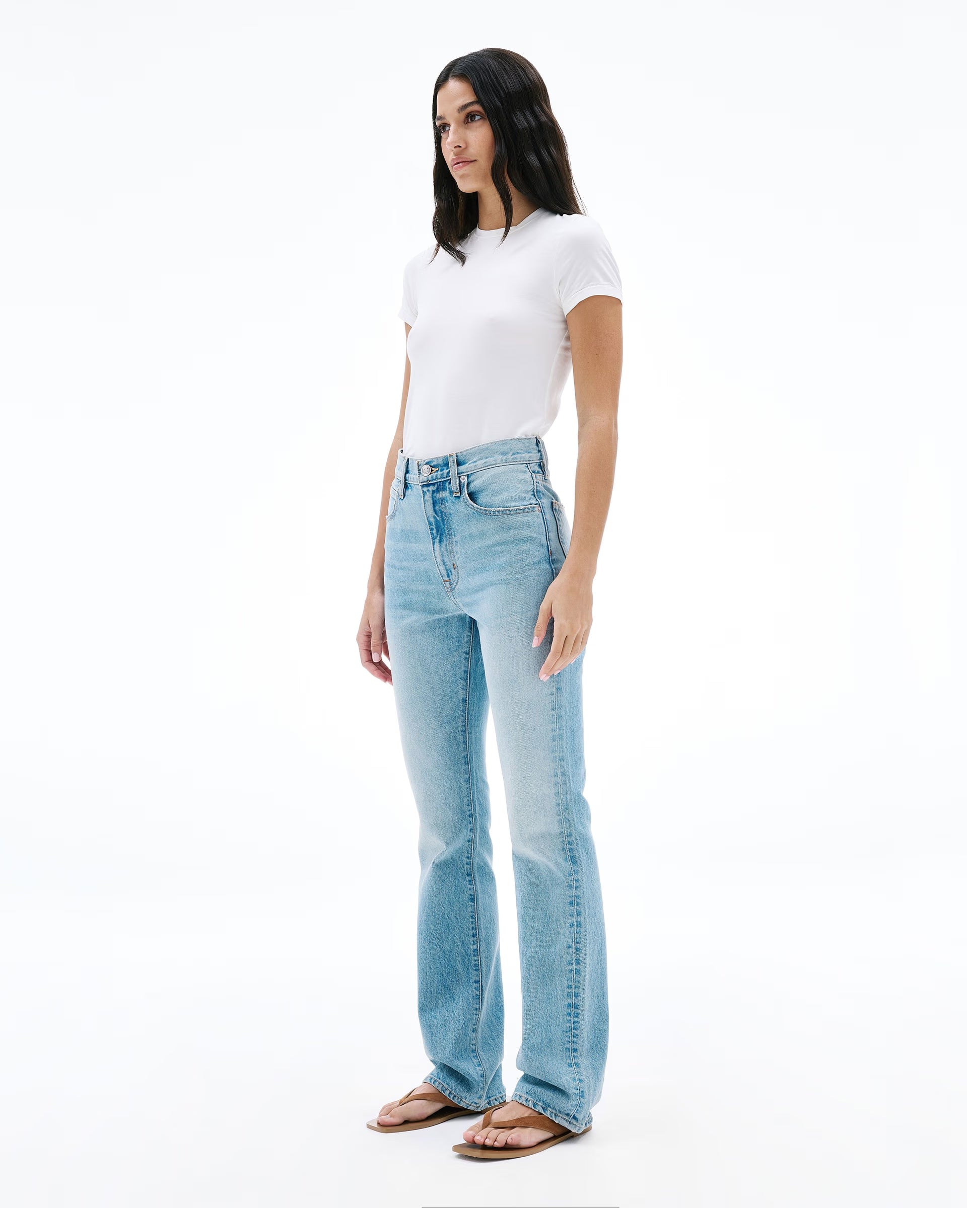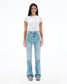 Jade is a modern reinterpretation of the classic bootcut, featuring a slim fit through the leg with a subtle flare at the hem. Designed with a high-rise waist, it offers a contemporary, versatile take on the everyday boot jean.