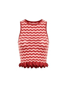 The Diana Top is defined by its graphic contrast and textural finish. Crafted from a wavy rib knit, this sleeveless tank features a body-skimming silhouette and a moderate cropped length.