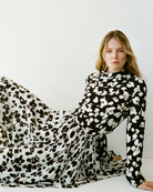 The Ansel Top in Printed Soft Twill is crafted in a soft floral print. Features a fluid cowl turtleneck and back keyhole detail.