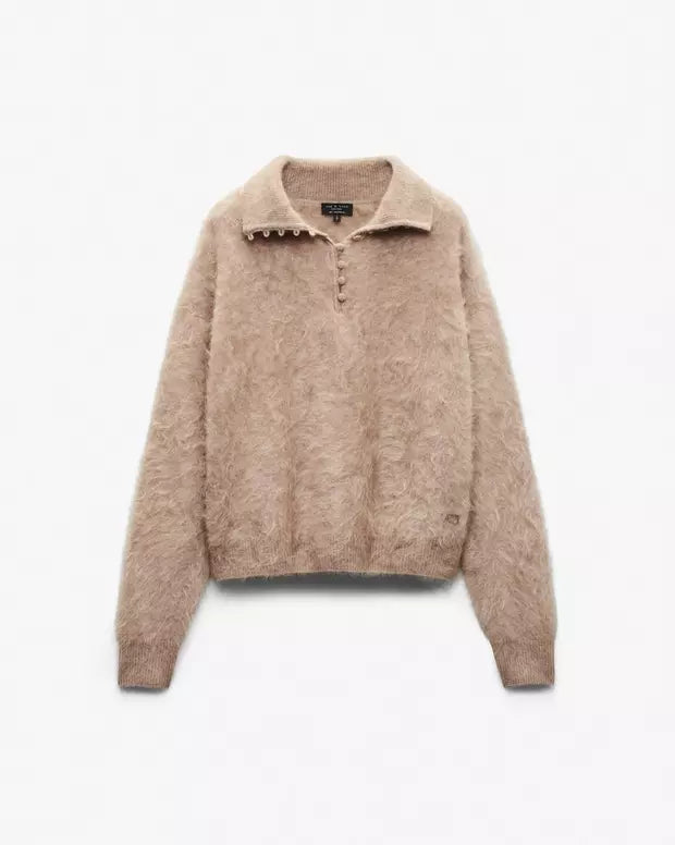 Dreamy textures. This cashmere cardigan is cut for a relaxed, oversized fit. Fabric-covered front buttons can be closed to create a mockneck. Falling to the hip, it features contrasting embroidered logo detail features to one side. Consider letting this style breathe between wears to ensure its delicate, ultra-soft yarns feel just as lofty every time.