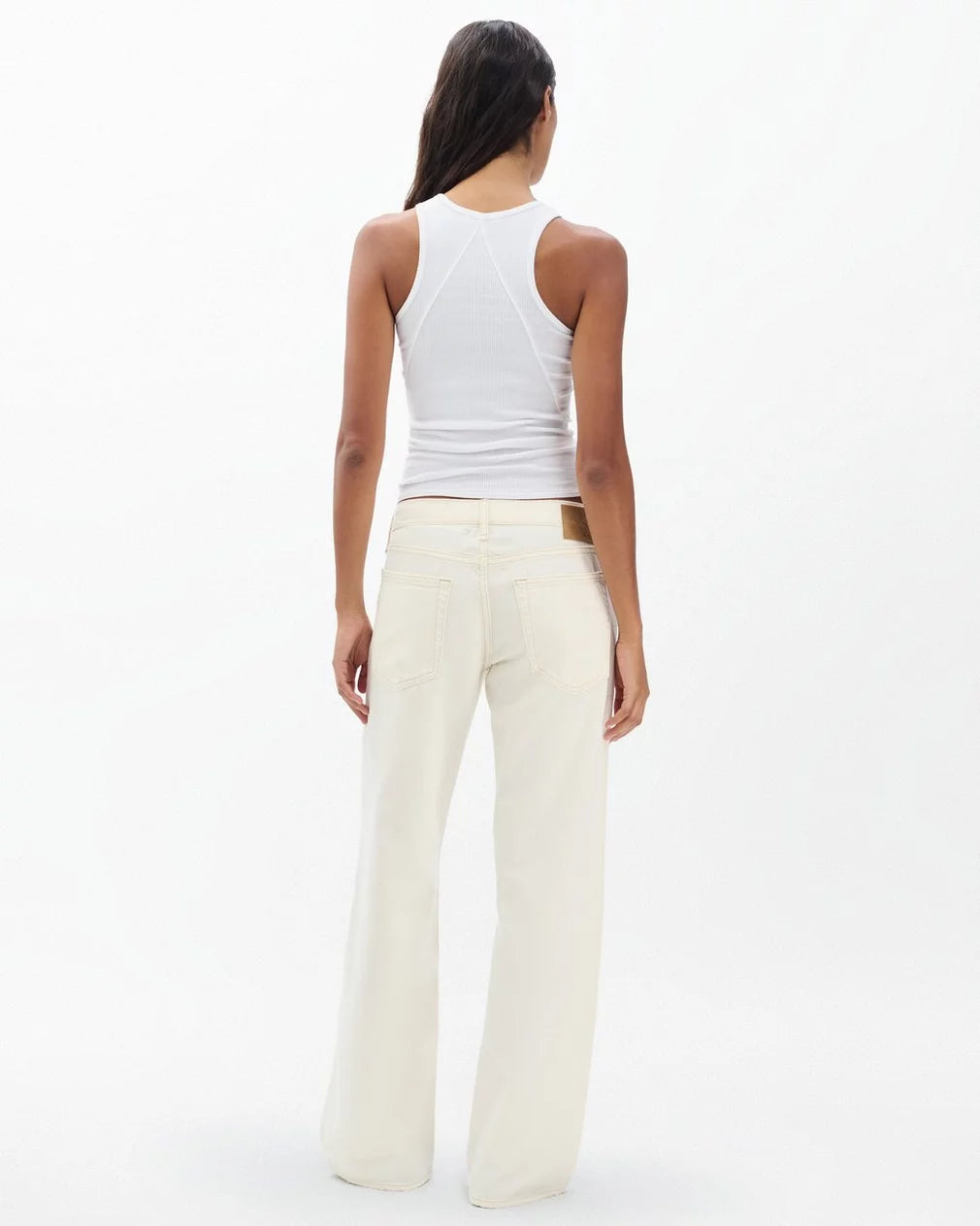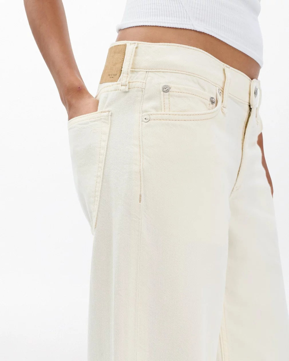 The Saige. Low-rise is back. Our new relaxed, full-length straight leg jeans are effortlessly laid back and unapologetically of the moment. Off-duty cool without even trying. Crafted from our Featherweight denim that's supremely soft and super light, with an easy drape. Feels airy & effortless. In Ecru, a soft, warm white.