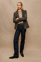 The Jac Blazer, made from luxe herringbone suiting, is classically tailored for a perfect fit along with faux horn buttons, notched lapels, and functional flap pockets.