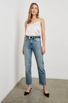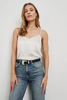 Made from super smooth lightweight crepe, the Paola is a flattering luxe tank top that looks amazing on its own and is great for layering. This tank top comes in a classic fit and features thin adjustable shoulder straps.