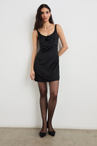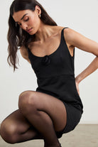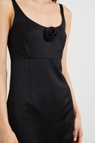 The Rhys features a fully-lined scoop front and lower back, with a fitted silhouette constructed from heavy satin crepe. Finished with a romantic rosette detail, it will have everyone head over heels.