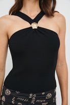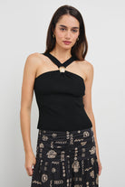 Flatter yourself in the Senna, a fitted knit top with ribbing for just enough stretch. Finishing details include a crossover neckline with golden seashell hardware.