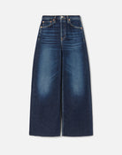 The high rise wide leg crop in Barely Worn is a the newest iteration of RE/DONE's best selling denim silhouette. Constructed from comfort stretch denim with a rigid look, each pair features a raw hem and cropped inseam.