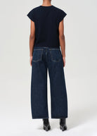 The Low Curve Jean Crop features a relaxed, tapered leg and slouchy fit that sits low on the hips, now with a slightly cropped 27.5" inseam. Crafted from rigid, non-stretch denim, this dark-to-medium indigo wash is finished with subtle marbling for added depth. Style with a slim tee or oversized jacket. Perfect for Petite frames.