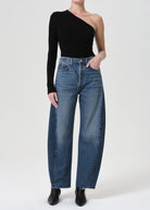Structured to perfection. The Luna is designed with a waist-accentuating high-rise and a full-length relaxed leg. The pieced insert detailing at the outseam creates a bowed leg silhouette, ideal for taking your everyday denim to the next level.