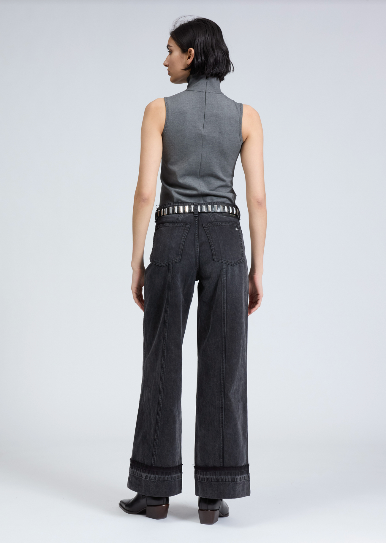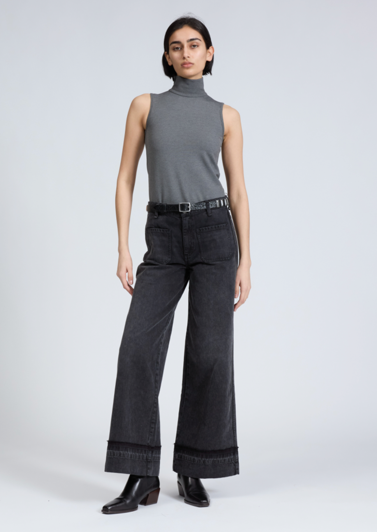 Get ready to make a statement with the Marina Jean! These wide leg jeans feature a unique placket pocket in the front and a chic hem at the ankle. Perfect for a bold and playful look. (No boring pants here!)
