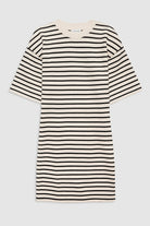 The Mona Dress is made from a midweight cotton French terry fabrication with black and white Breton stripes.