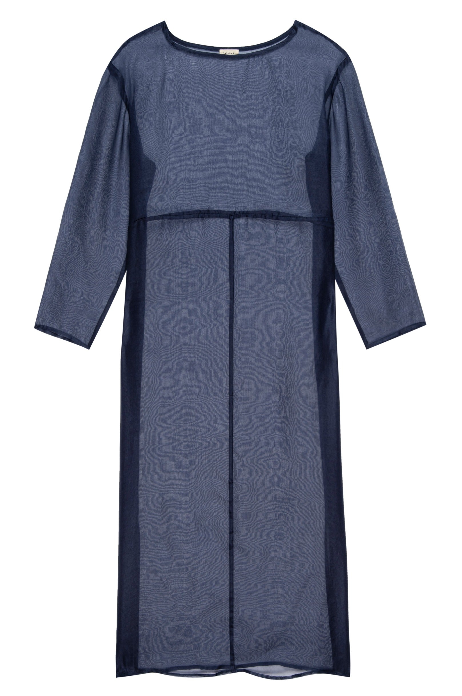 The Organza Dress is crafted from 100% silk and features, piping details throughout, side slits at the bottom, and a boxy fit.