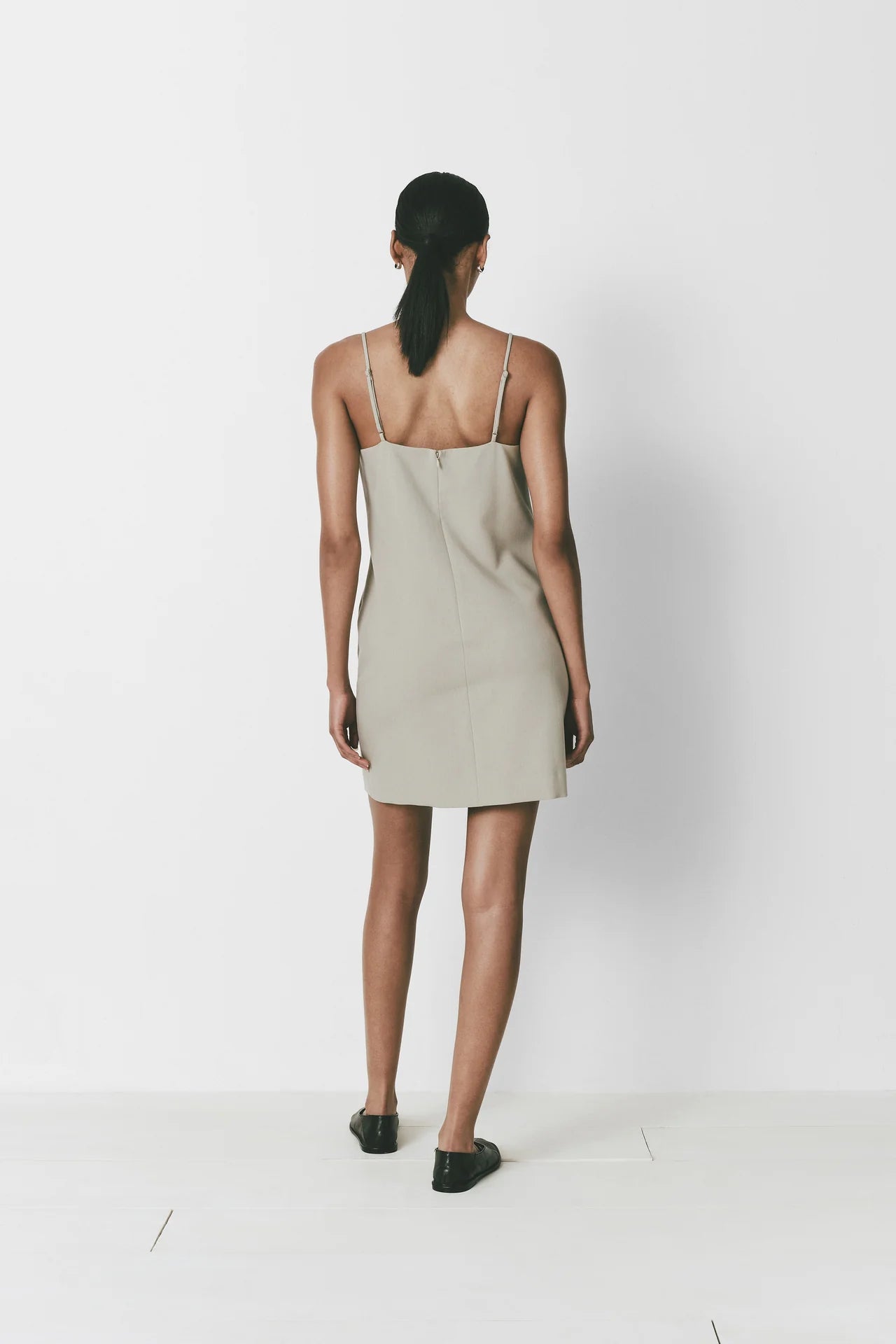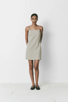The Sare Mini Dress features thin straps, square neckline, adjustable straps, and back zipper detail. The perfect mini dress for spring and summer paired back to your favorite sandal or sneaker.