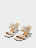 Varvara are Aeyde's elegant double strap heel. This pair is crafted from beige kid suede.