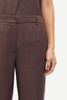 Mid-waist trousers with a regular fit and straight leg. Hidden button and zipper closure at the fly. Side slit pockets on the front and welt pockets on the back. Pressed creases on the front and back. Belt loops. Main material made from a blend including LENZING™ ECOVERO™ Viscose and linen. This product contains LENZING™ ECOVERO™ Viscose, certified with the EU Ecolabel for textile products.