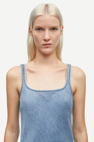 Bias-cut maxi dress with a slim fit. Slit at the side. Washed denim look. Main material made from 100% TENCEL™ Lyocell. This product contains TENCEL™ Lyocell, certified with the EU Ecolabel for textile products.