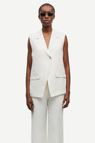 Vest with with a loose fit. Single-breasted closure on the front and hidden button on the inside. Notched lapels. Welt pockets with flaps on the front. Vent at the back. Shoulder pads. Main material made from a blend including LENZING™ ECOVERO™ Viscose and linen. This product contains LENZING™ ECOVERO™ Viscose, certified with the EU Ecolabel for textile products (licence no. AT/016/001) for environmental excellence.