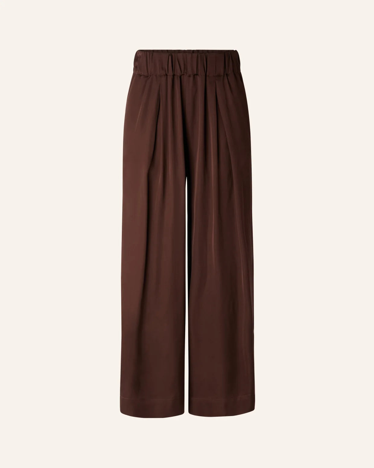 Loose-fitting 7/8-length trousers with elasticated waistband in lightweight viscose satin.