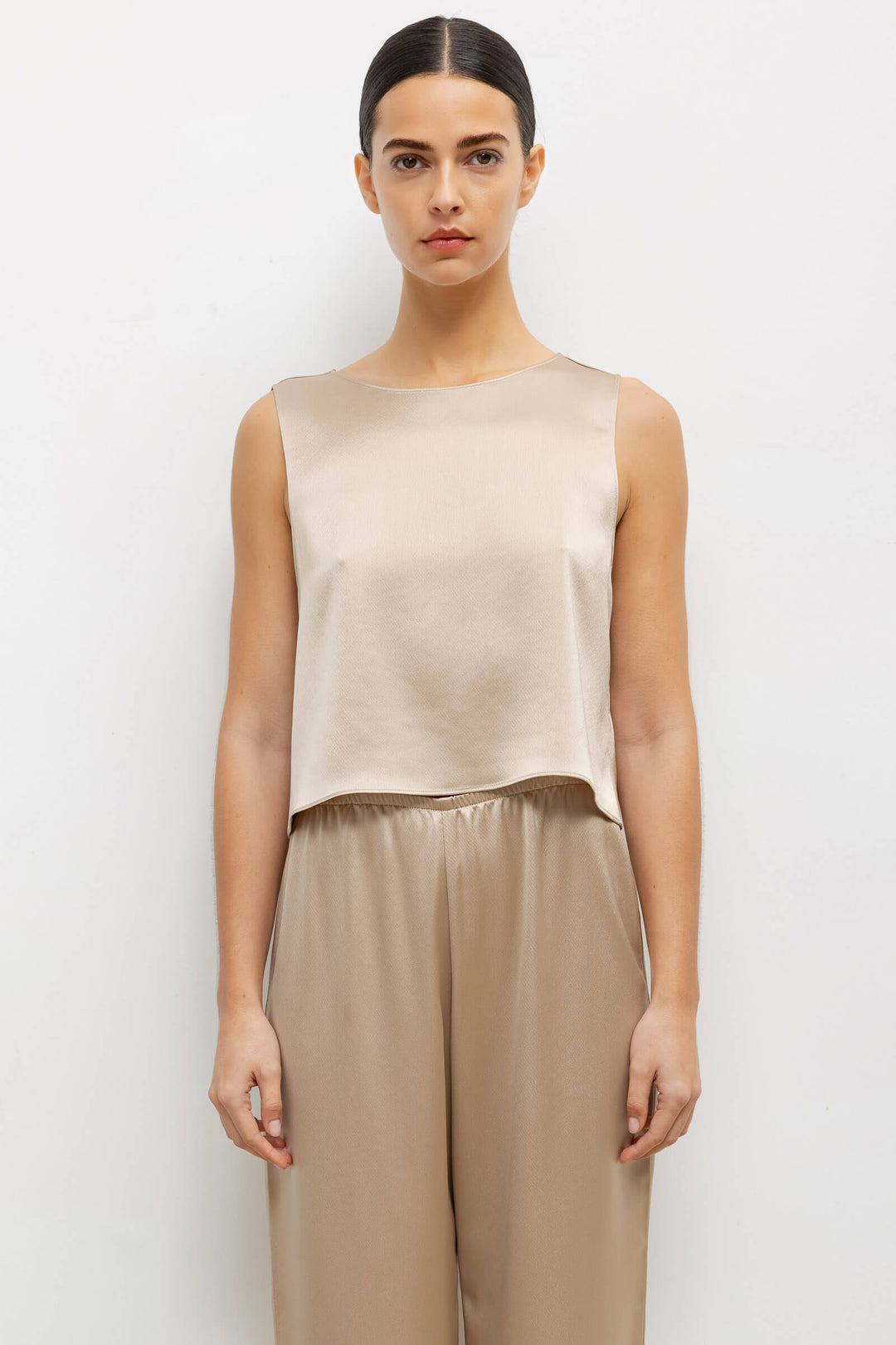 SILK SATIN ASYMMETRICAL DRAPE TOP