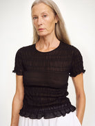 Giving your wardrobe a feminine spin, the Ella T-shirt can easily be worn on its own or layered under blazers, jackets and cardigans alike. It’s designed in a semi-sheer fabrication with a tactile smock pattern.