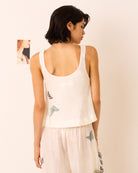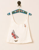 Rendered in hand-loomed silk, our scoop neck top is hand-block printed with an asymmetric butterfly motif. The double-faced silk top has a smooth drape.