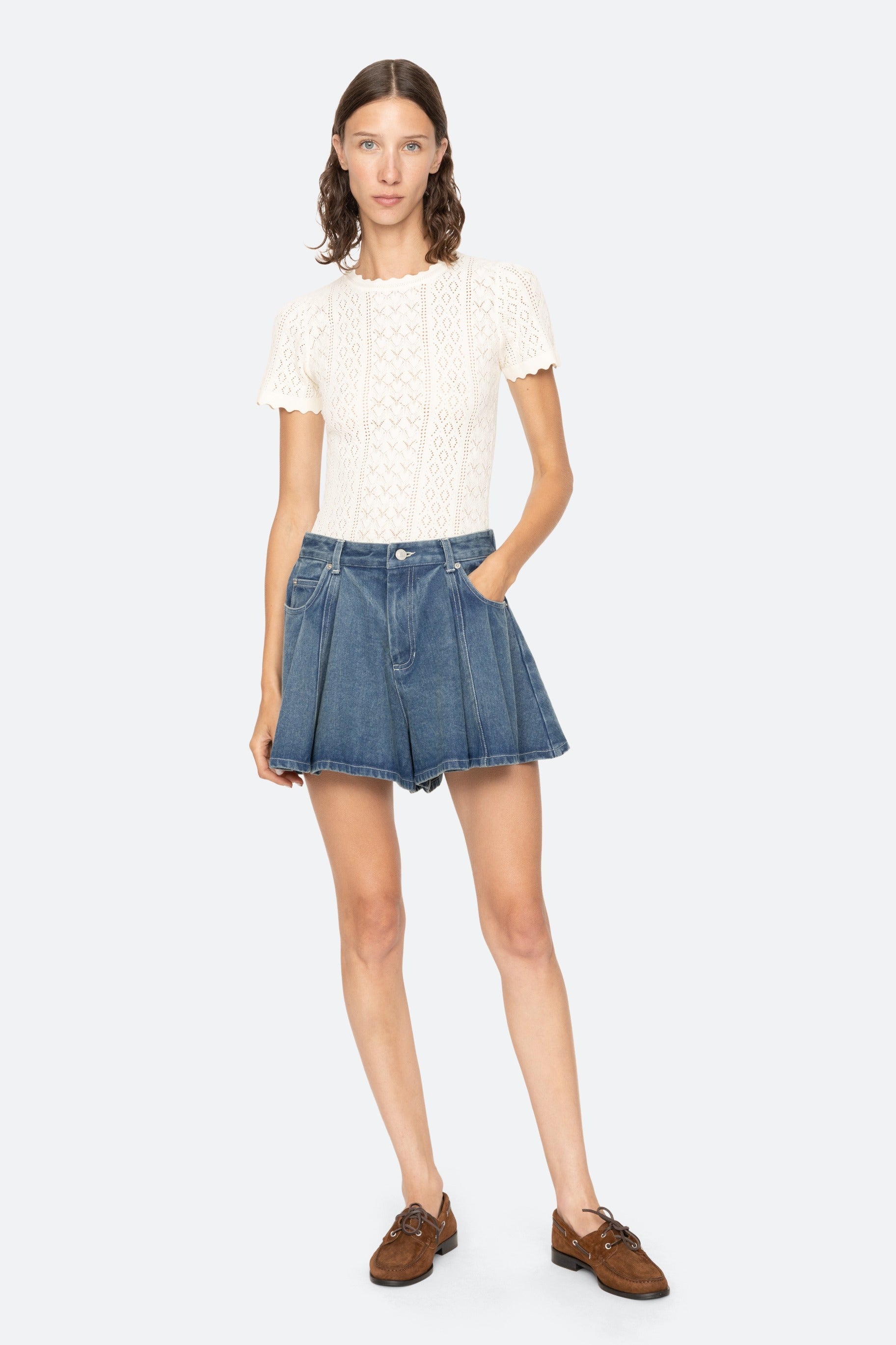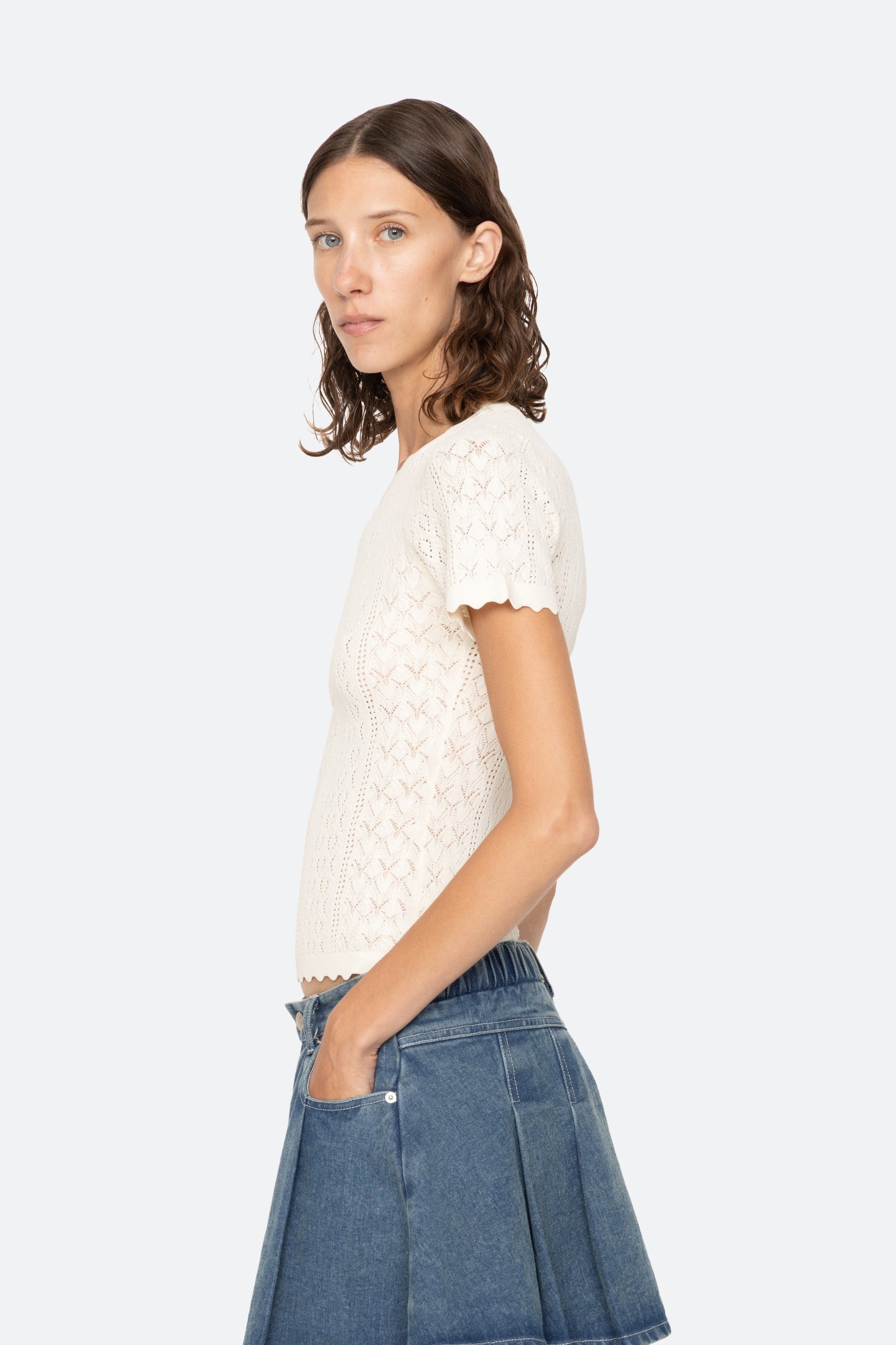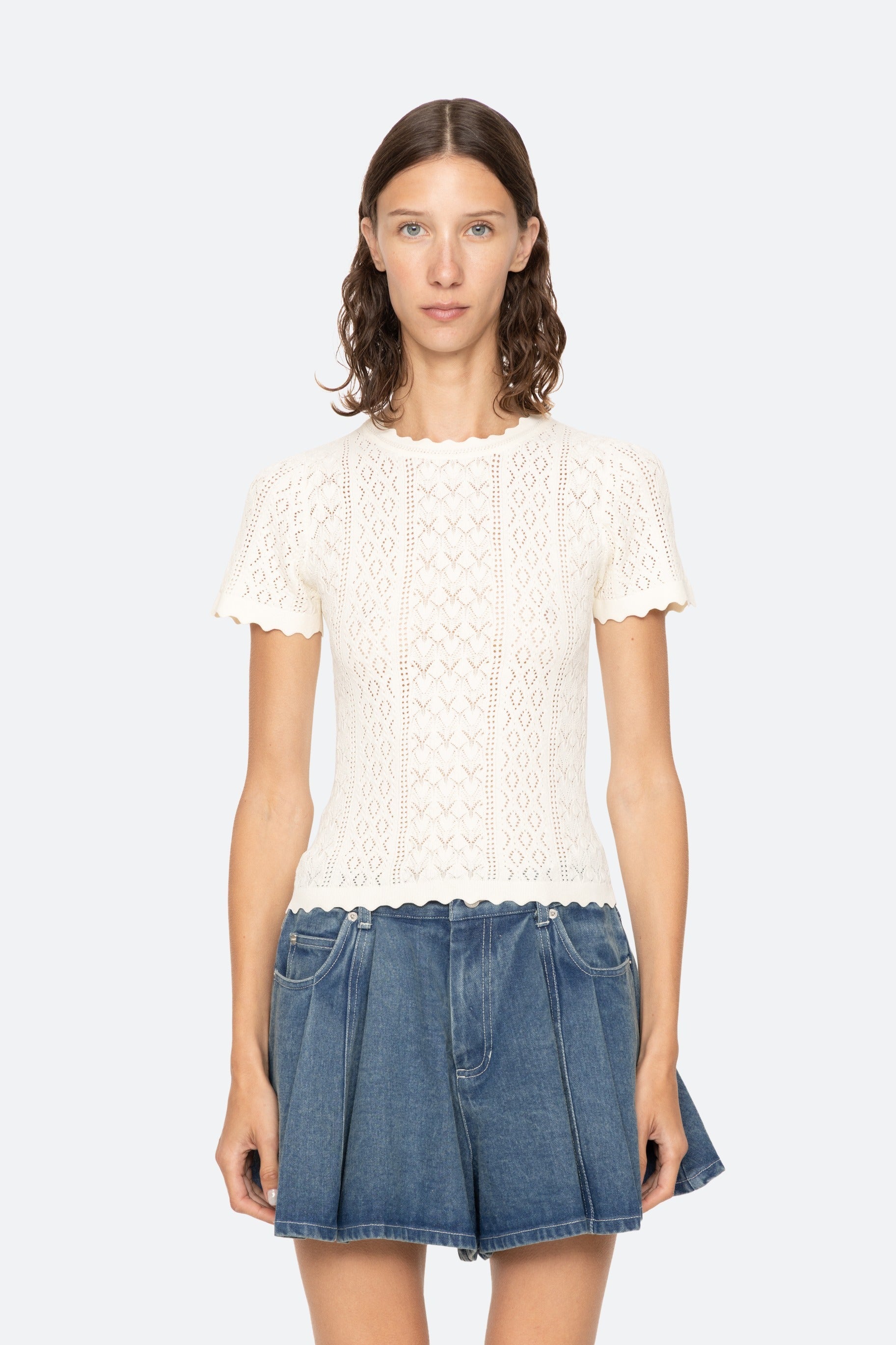 Georgia knit short-sleeve top in cream.