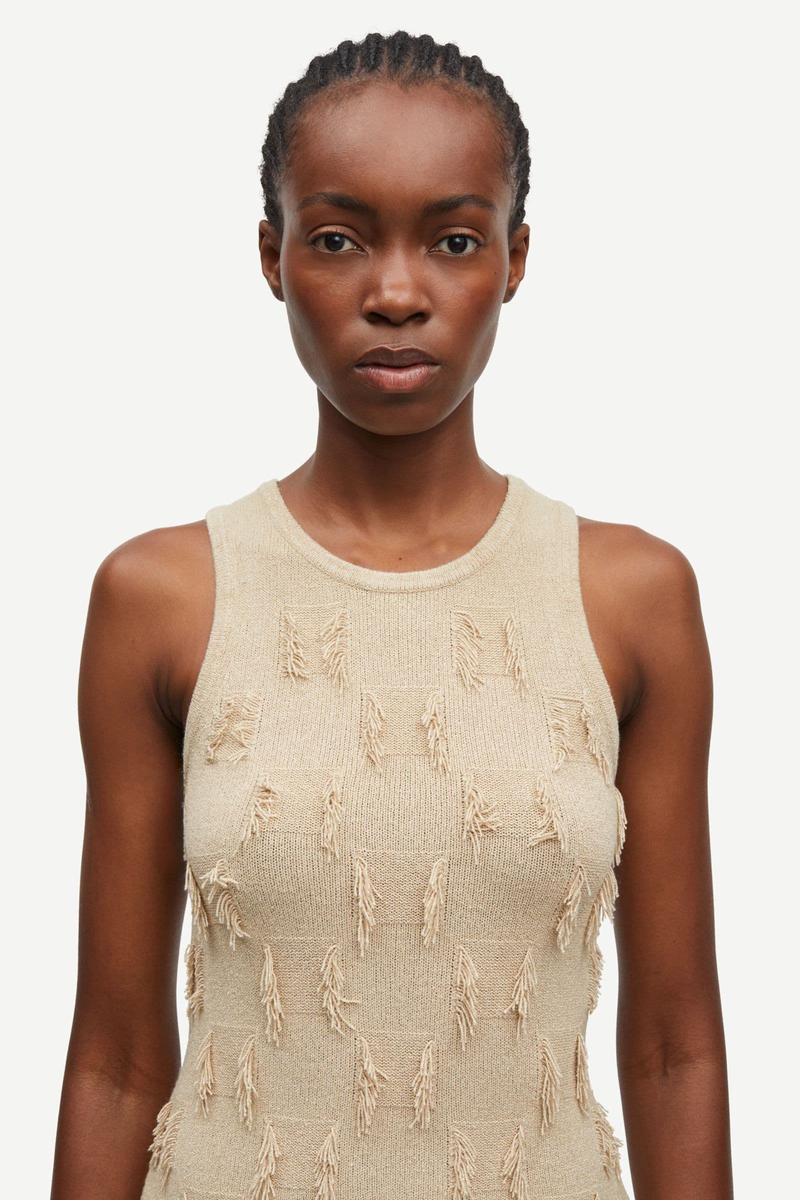 Knitted tank top with a slim fit. Textured detailing. Main material made from an elastic blend with LENZING™ ECOVERO™ Viscose. This product contains LENZING™ ECOVERO™ Viscose, certified with the EU Ecolabel for textile products (licence no. AT/016/001) for environmental excellence.