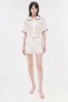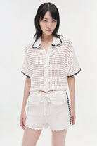 The Shiloh Shirt in Ivory. Crafted from cotton chainette, this camp shirt offers a breezy take on structured shirting. Lightweight yet refined, its relaxed fit and subtle textural detailing make it a versatile staple for effortless styling.