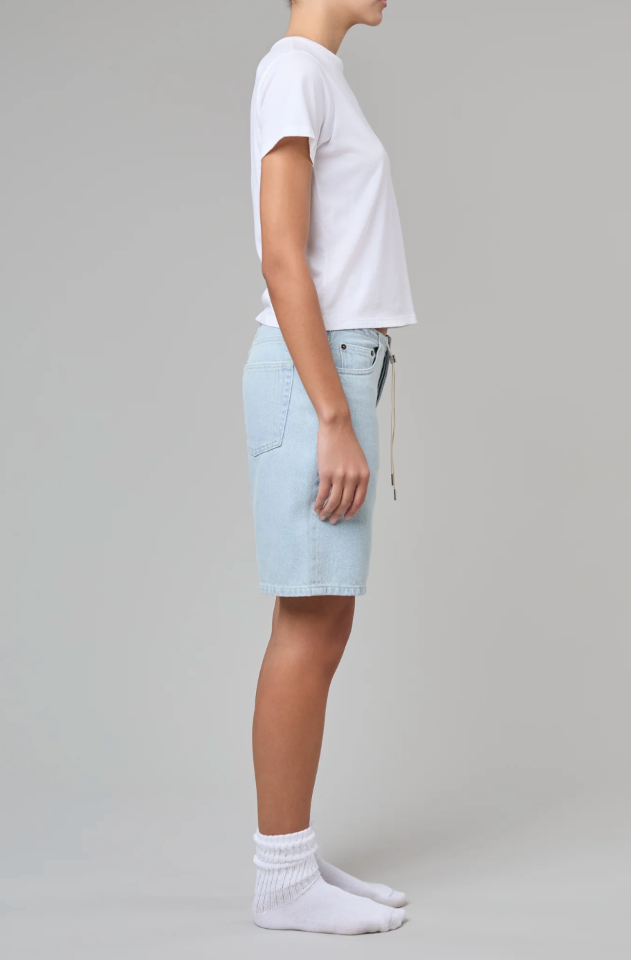 They are a relaxed leg, low-rise jean short with an adjustable drawstring toggle. The Cool Shorts have no waistband just like our original Cool jean style. They are designed to hit just above the knee and feature a traditional button fly, custom hardware, and our signature 'SH' embroidery.