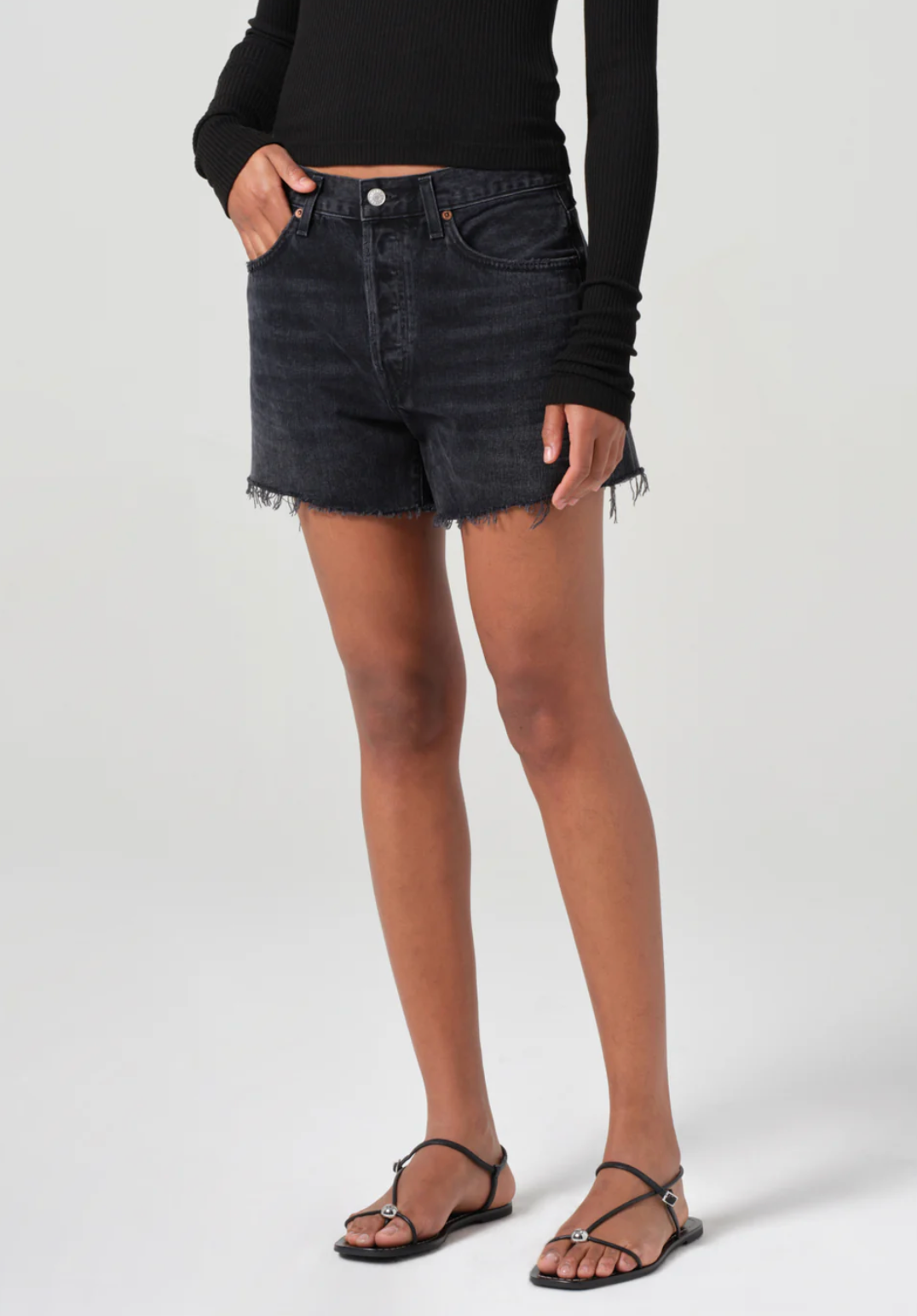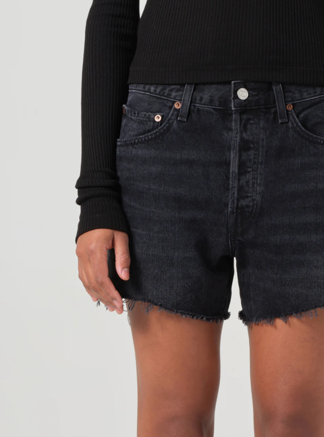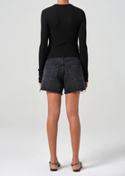 The Parker Long shorts are crafted from non-stretch, regenerative cotton in a saturated black denim wash, complete with subtle whiskering for a lived-in look. With a relaxed high-rise and ample room in the thighs, these shorts offer both comfort and effortless style. Pair them with a simple tee for a laid-back vibe, or elevate with a tailored top for a more refined look.