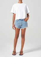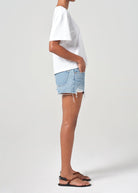 The fan-favorite Parker Short features a flattering high-rise with a relaxed silhouette through the hips, tailored to feel as though they were made just for you. Crafted in pale vintage indigo denim with regenerative cotton, these non-stretch shorts offer a comfortable fit with a timeless, worn-in look. Effortlessly stylish and perfect for warm days, they pair seamlessly with anything from casual tees to breezy blouses.