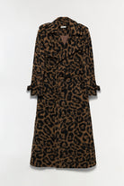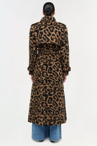 The Rumi Coat in Camel. This belted long overpiece features a double-breasted design with a wide lapel collar and shoulder epaulets. Its tailored fit and waist-cinching belt create a flattering silhouette, adding sophistication to any outfit.
