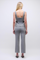 A sleeveless top with vertical contoured seaming and sharp, contrasting belted detailing at the side hip.