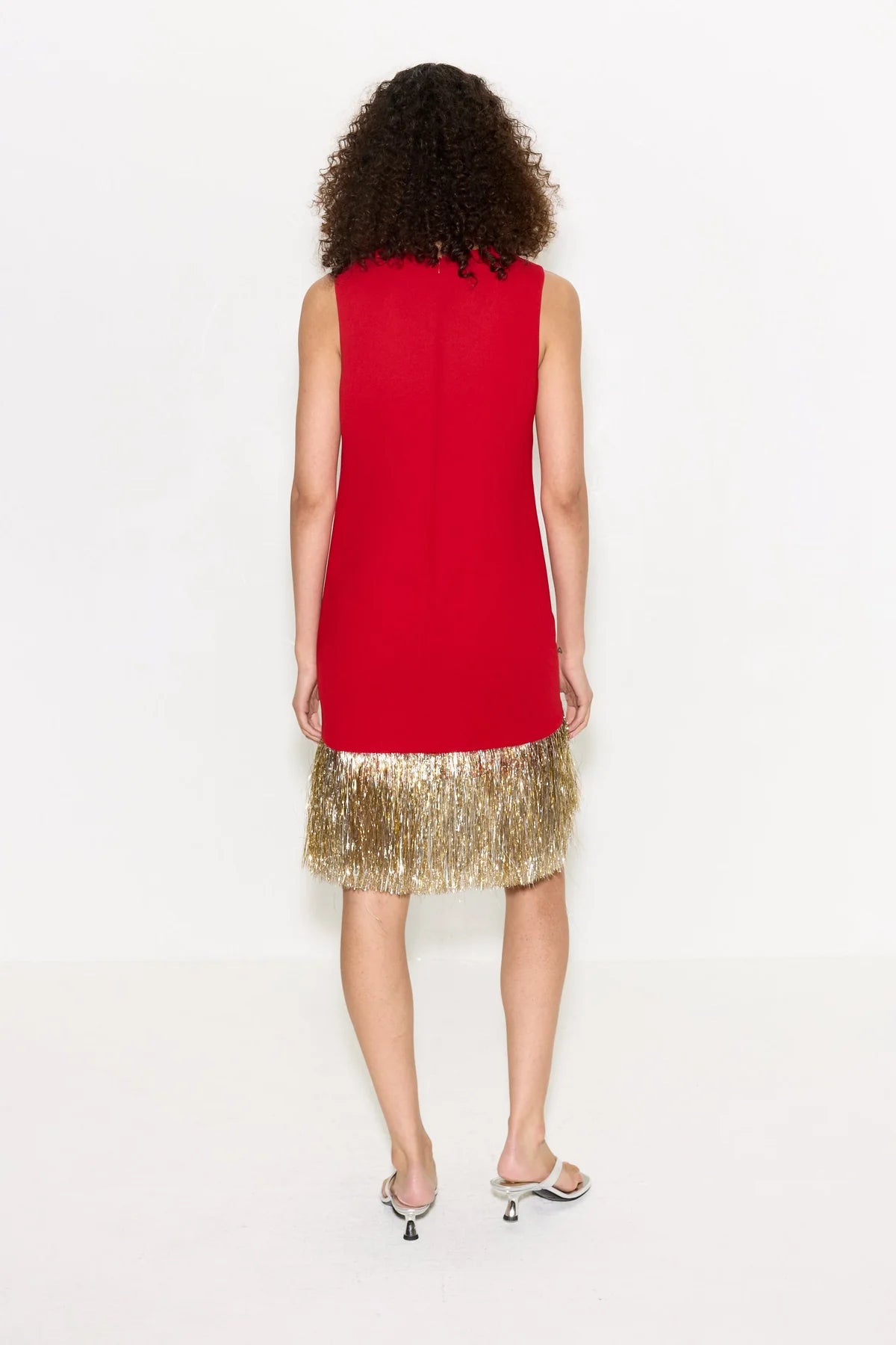 MINI DRESS WITH CASCADING FRINGE FOR FLUID MOVEMENT AND AN ELEGANT SILHOUETTE. PAIR WITH THE MATCHING PANTS FOR A STRIKING COORDINATED LOOK.