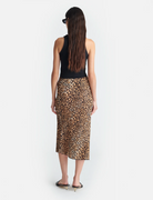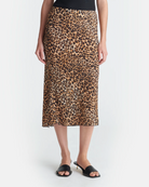 The Zarina skirt is inspired by classic slip styles, with a clean-lined, fluid shape. Made from our 60s pleat fabric in an ocelot pattern, it sits high on the waist before falling to mid-calf.