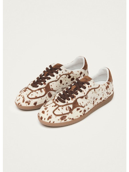 Camel calf hair sneakers with a cowhide pattern A new version of the classic, the Tb.490 Rife is crafted from cream calf hair with a camel cowhide pattern. Designed in a low-top silhouette sitting on rubber soles, it’s complete with classic features, including contrast heel tabs, exposed stitching, and logo stamps.