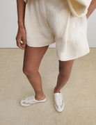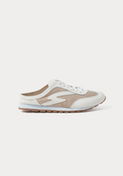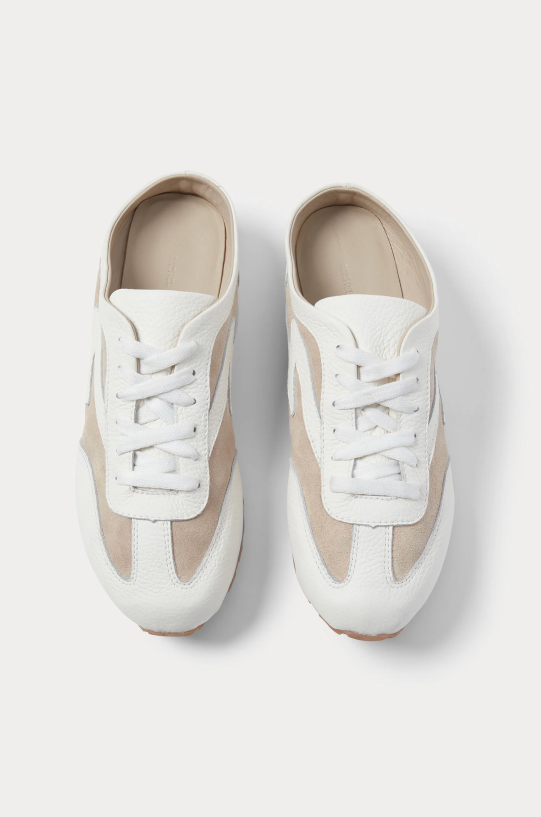 Leather lace-up sneaker mule with contrasting panels. Designed with a extra low-top silhouette and sturdy rubber soles for grip.