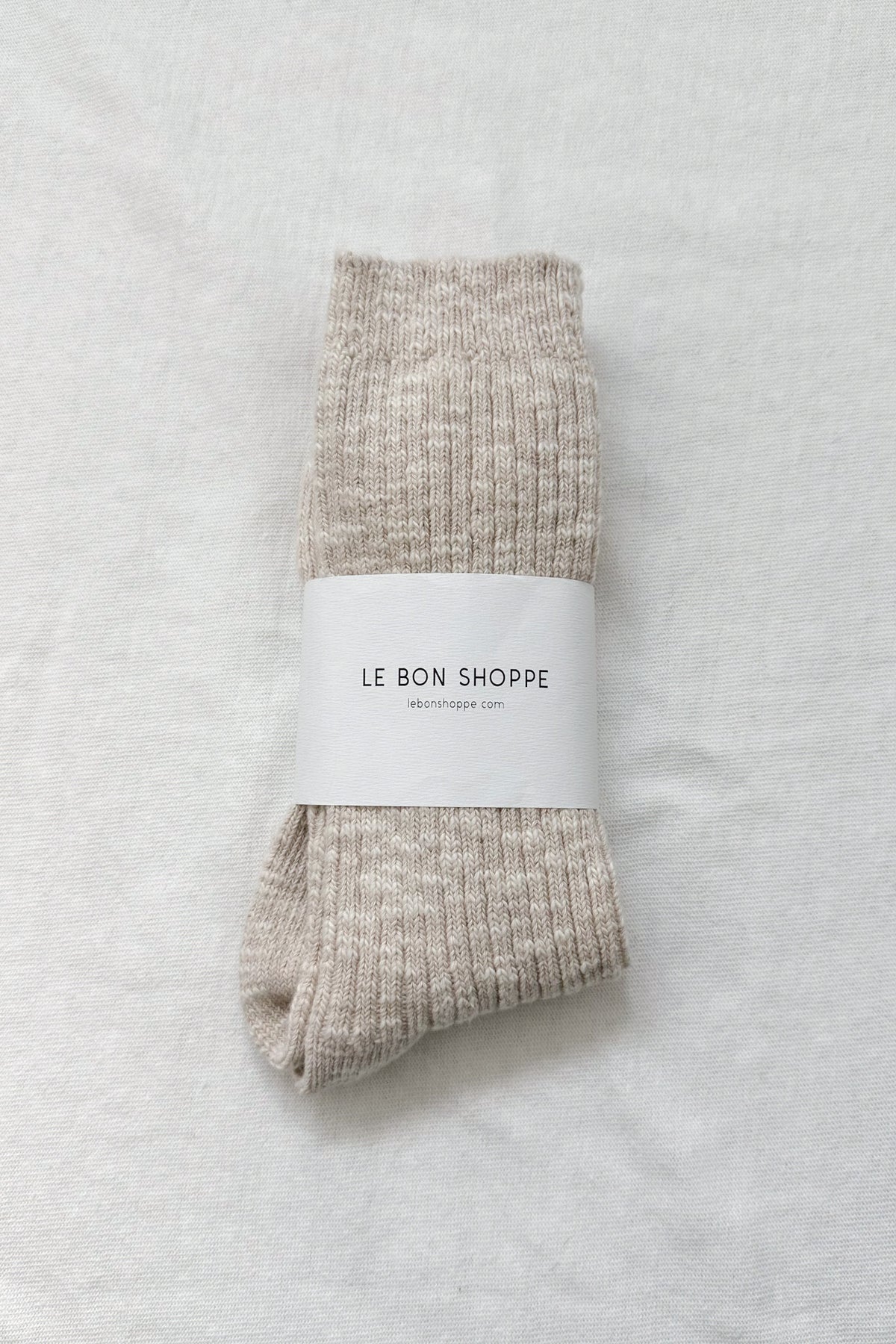 We were dreaming of a chunky, beautiful knit sock that felt effortless and romantically rustic. The rich texture, faded color palette, thick ribbing and organic scrunching of Cottage Socks invites feelings of wabi sabi and slowing living. These natural, cotton blend socks loves to be worn with vintage florals and tonal layers of luxurious natural fibers.