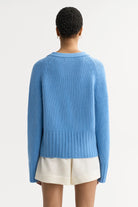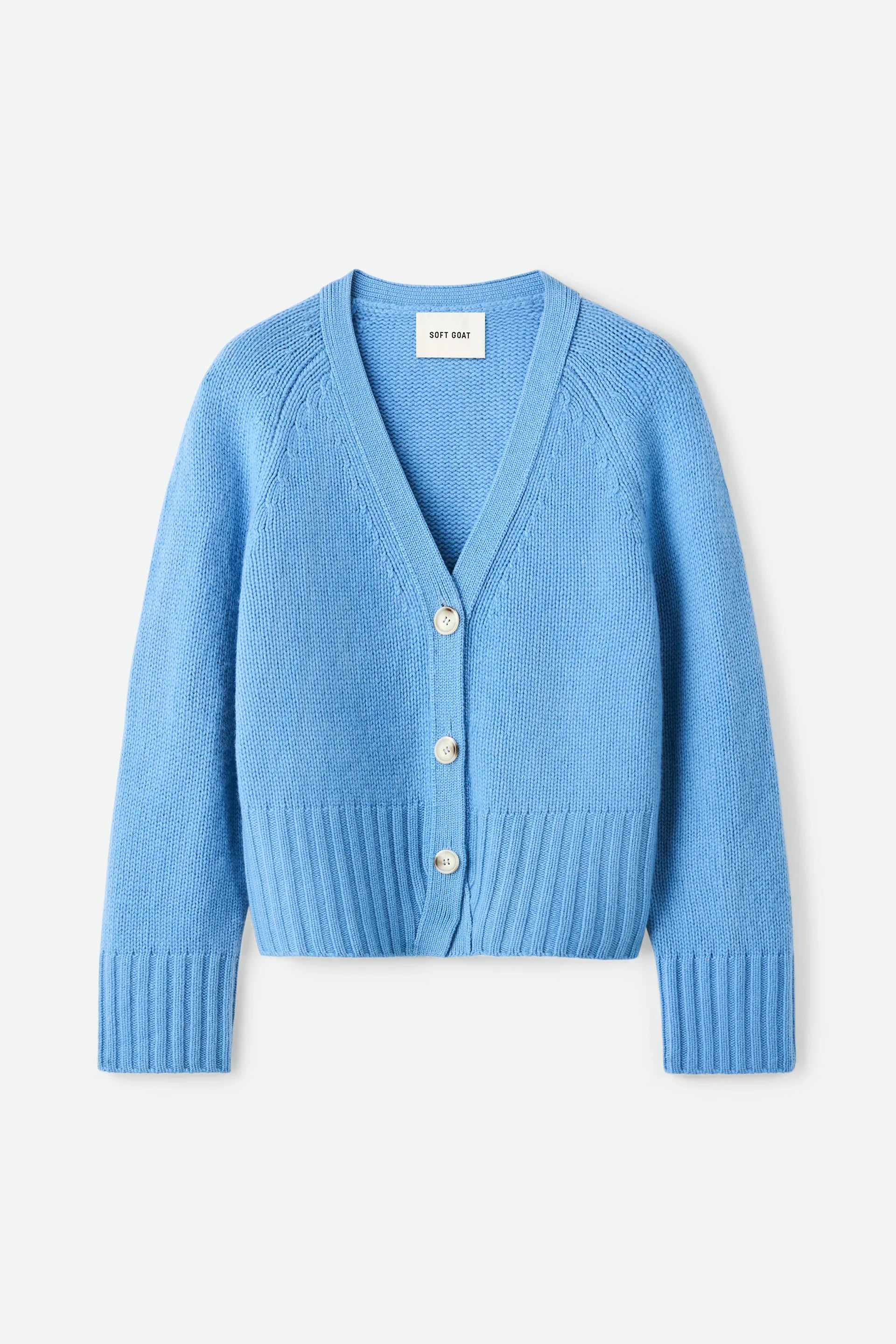 A chunky knitted cardigan with v-neck and buttons. Knitted in 100% cashmere.