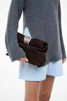 The Cuff Clutch is a slouchy clutch featuring our new organic draped metal cuff hardware. The clutch's interior is easily accessed through the zipper opening at the back and includes a detachable thin leather shoulder strap.