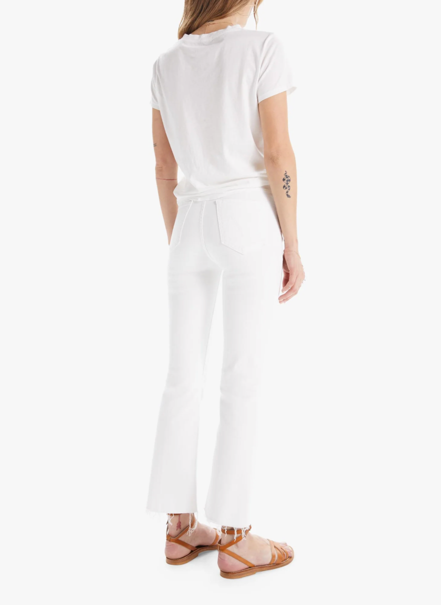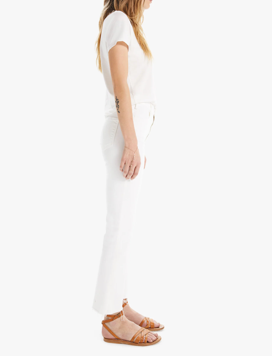 Mirror, mirror. This bestselling high-rise flare has an ankle-length inseam and a raw hem. Made from stretch fabric, Fairest Of Them All is our bestselling white denim.