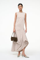The Harlow Bag features a center front Moon buckle, and has a snap closure and interior pocket.