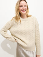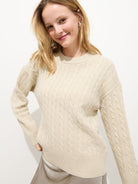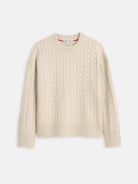 - Details we love: Classic cable knit, red chain stitching in the back lining, wool cotton blend — meaning it's warm and soft.