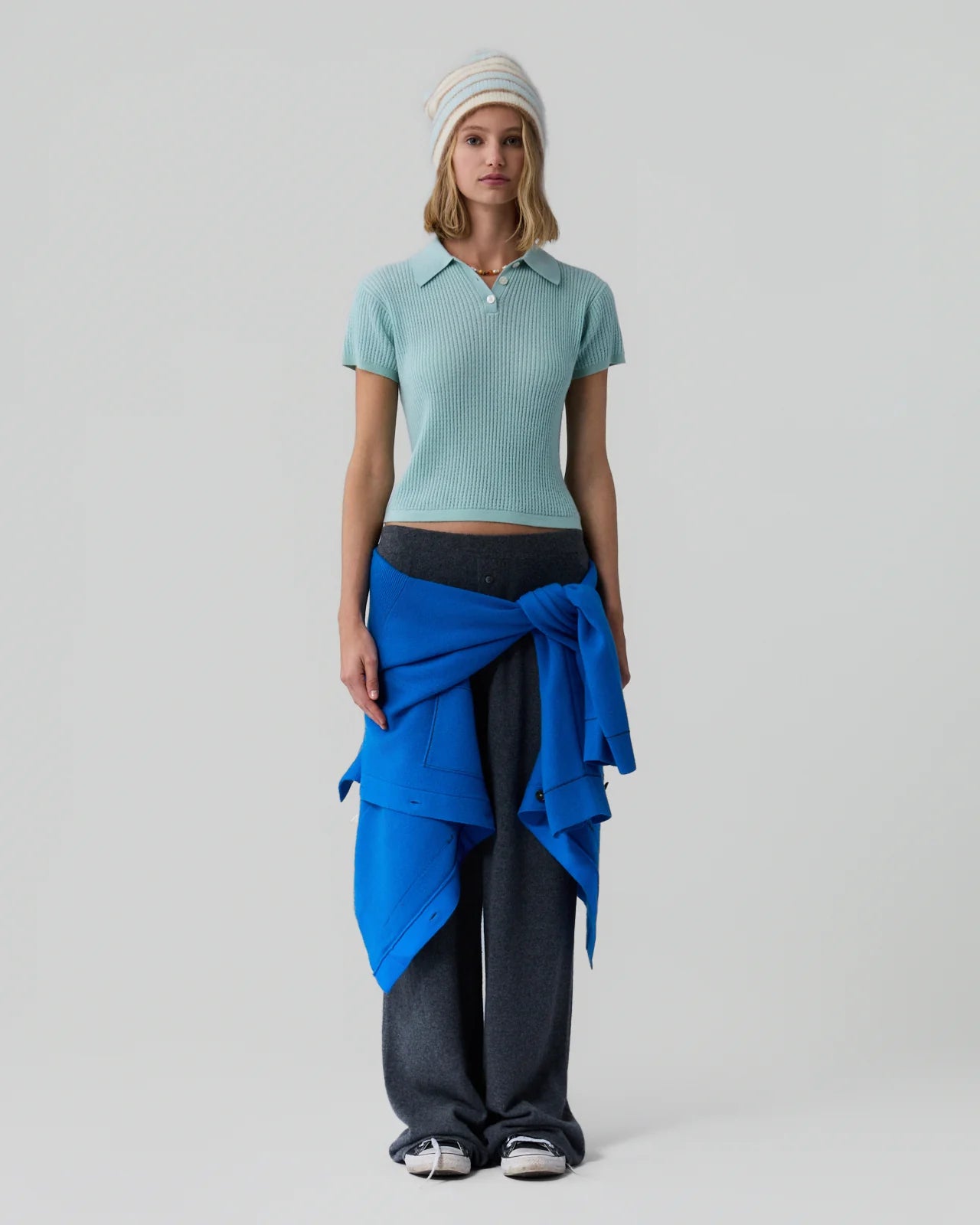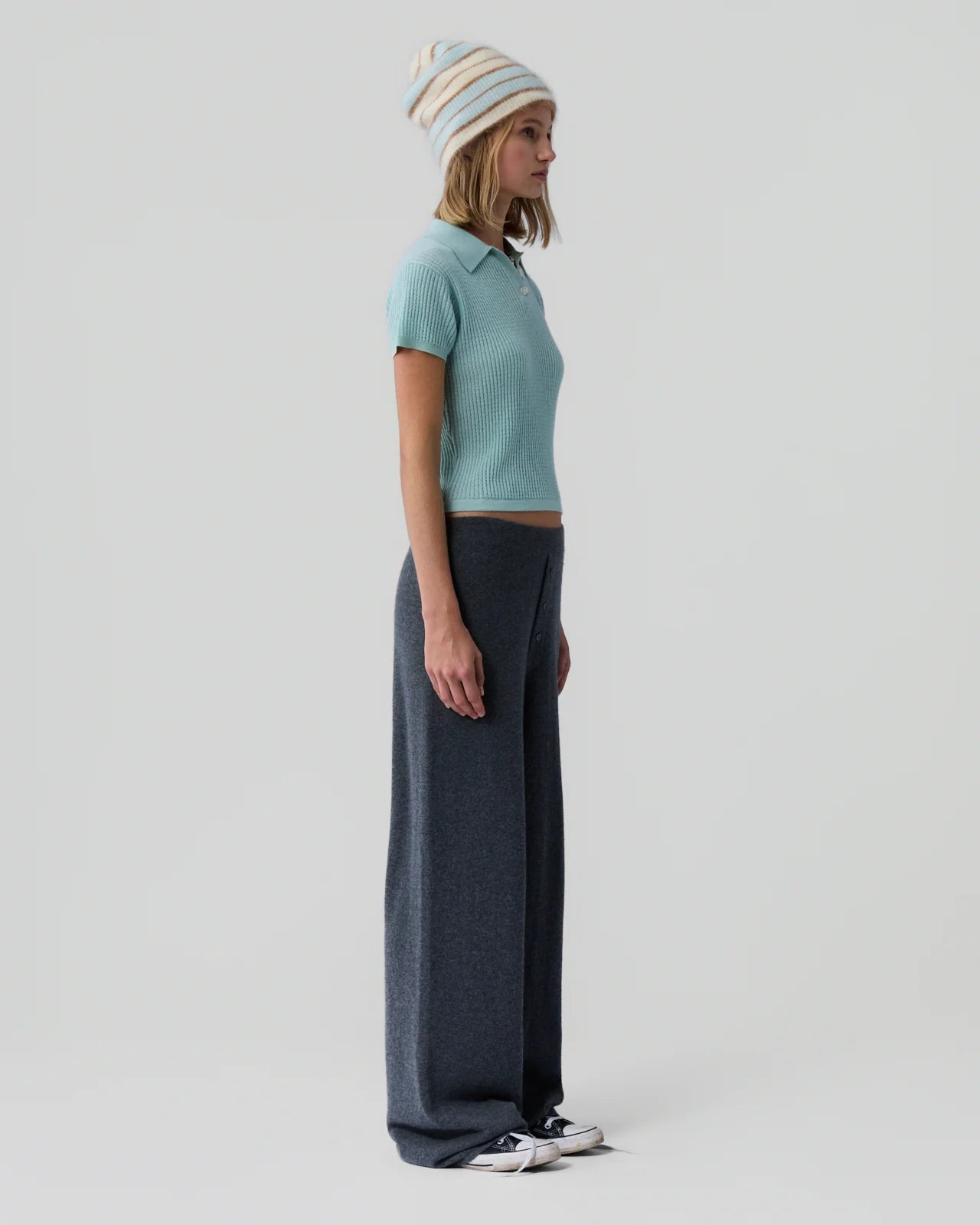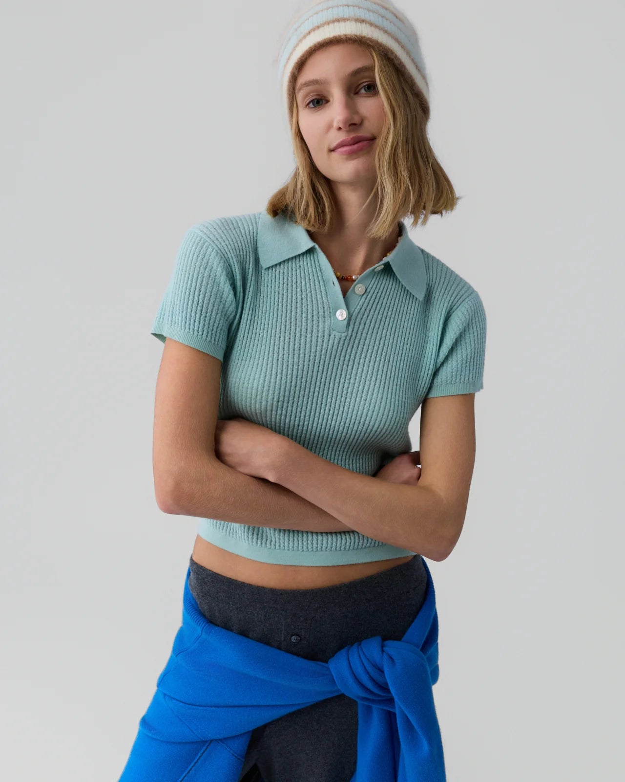 The Shrunken Polo is a core Guest In Residence cashmere style with our signature lightweight waffle knit. This women’s preppy cashmere polo sweater transitions from tailored office looks to casual weekend wear, effortlessly worn with jeans.