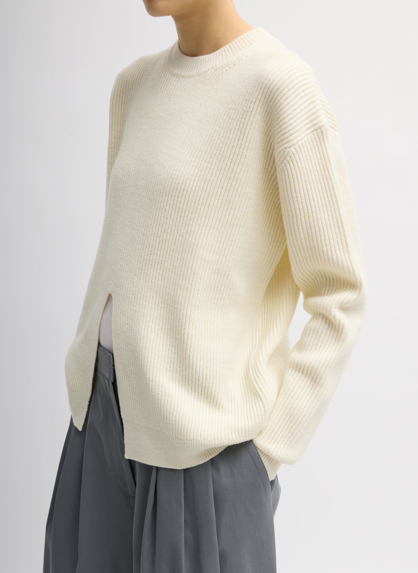 CARDIGAN STITCH SPLIT FRONT CREWNECK EASY PULLOVER
