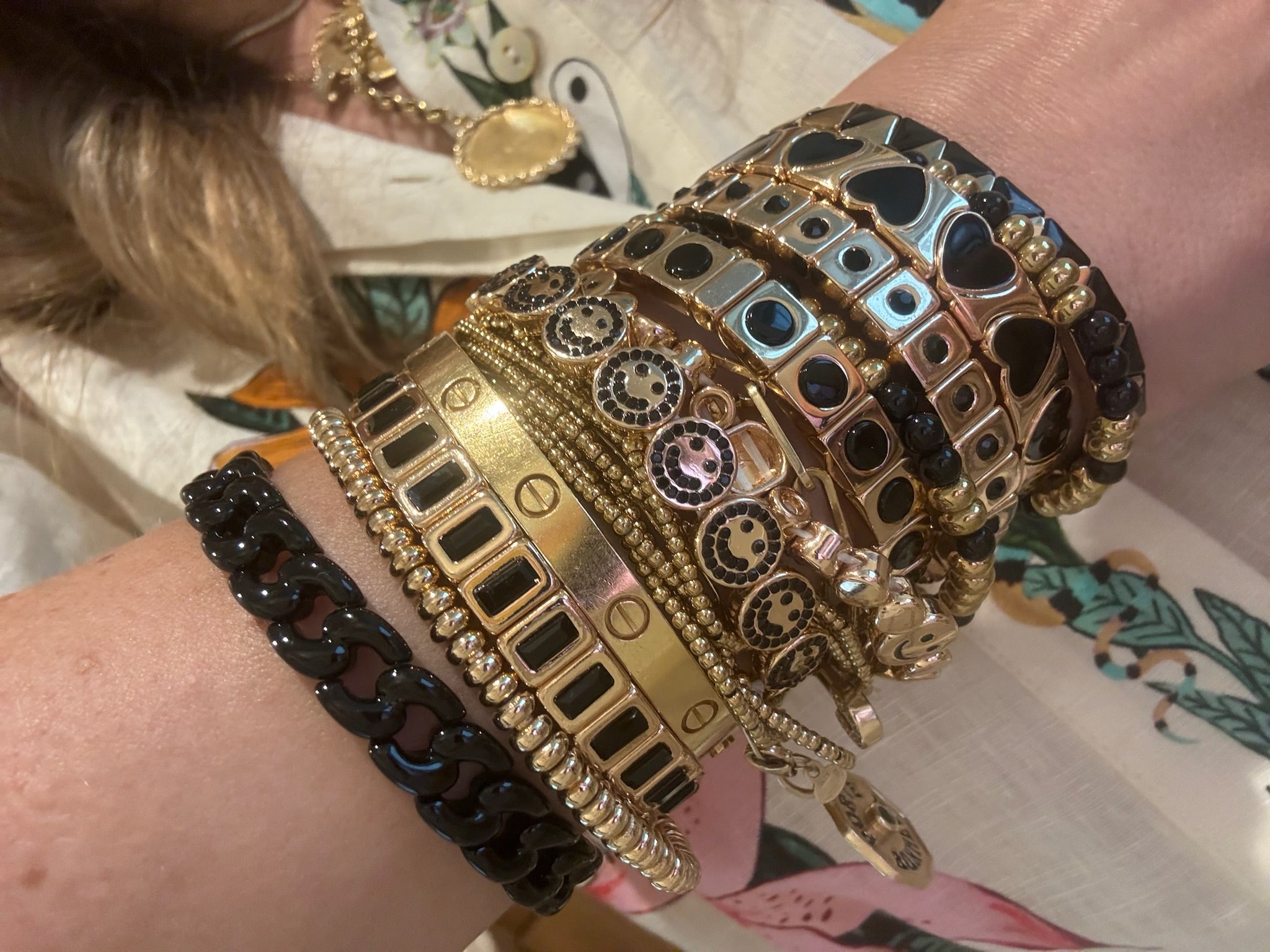 The Baguette Gem Single Mini Bracelet is hand-crafted using gold colored and gem stone beads. We carefully select each color pallet to strike a style for both everyday and special occasions. Part of our Fall Collection, this bracelet is 7" in length, 7MM bead diameter and is a slip-on-style. All of our single bracelets are designed to be stacked or they can be styled to wear alone.