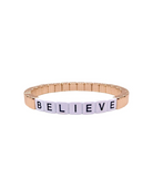 The Believe Gold Line Bracelet features textured gold beads in a thinner, more petite size with the word "Believe". Each bracelet is 7" in length, 7MM bead diameter and is a slip-on-style. All of our single bracelets are designed to be stacked or they can be styled to wear alone.