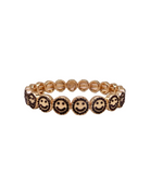 The Cherry Smiley Disc Bracelet is hand-crafted and a special limited edition to make you smile. This one is full circle of flat disc, cherry red cz smiley faces. This bracelet is 7" in length, 7MM bead diameter and is a slip-on-style. All of our single bracelets are designed to be stacked or they can be styled to wear alone.