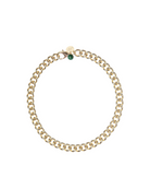 A stunning, statement curb chain necklace with a malachite bead and JW logo. This choker style chain sits high on the neck at 16" length or a little longer at 18" length. Wear with the clasp in the back or turn it around to the front to hang your pendant from it!