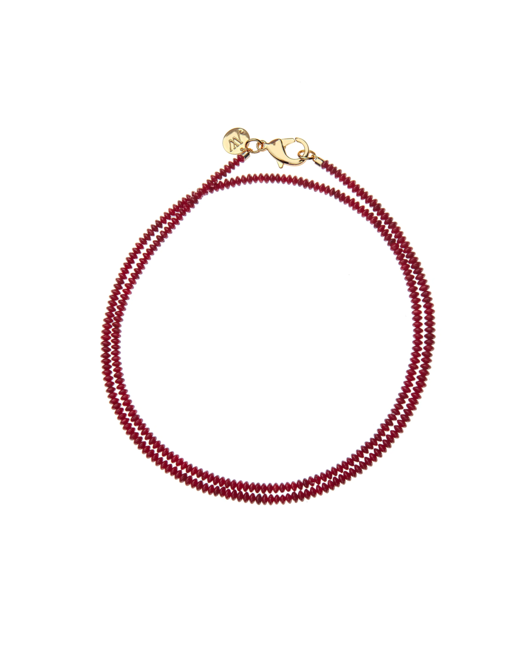 Made from bold red beads, this necklace can be worn in one long loop, double wrapped, or, if you are attaching your Jane Win pendant to the end, in a lariat style. A perfect addition to your neckmess.